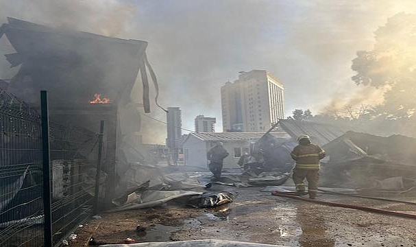 Bayraklı’da bir inşaat firmasına ait konteynerlerde çıkan yangın, İzmir Büyükşehir Belediyesi İtfaiye Dairesi Başkanlığı ekiplerinin hızlı müdahalesiyle yaklaşık 8 dakikada kontrol altına alındı. Olayda 22 konteyner zarar görürken, yangın sırasında işçilerin konteyner içinde bulunmaması olası bir faciayı önledi.